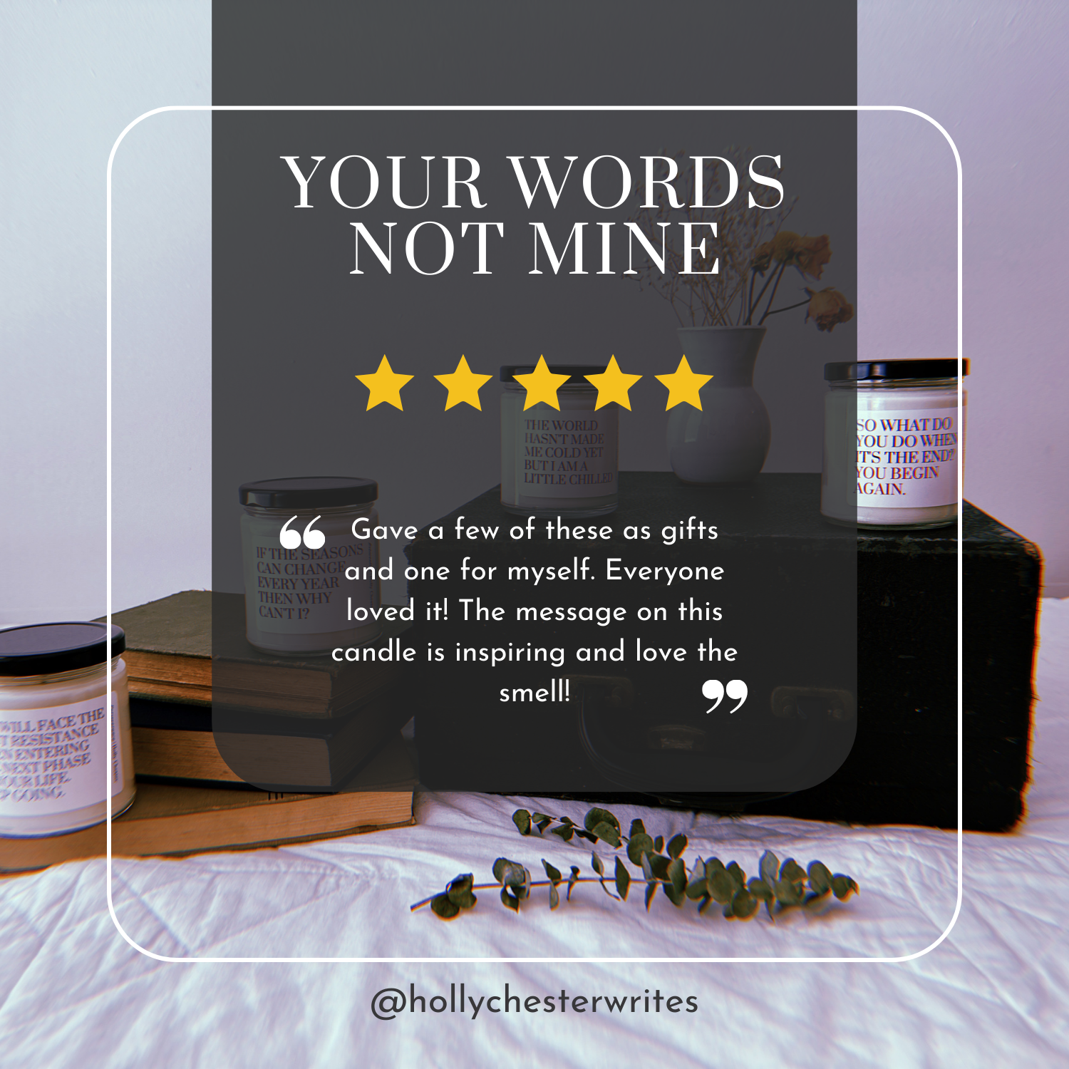 - Materials: 100% natural soy wax blend, 100% cotton wick, reusable glass vessel
